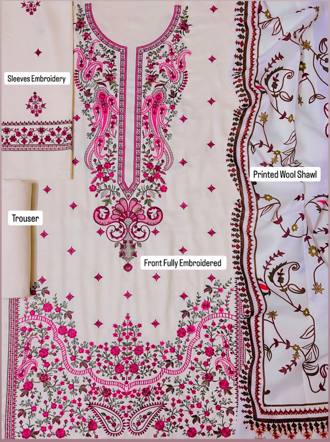 Zarashah jahan Dhanak 3pc Emb unstich