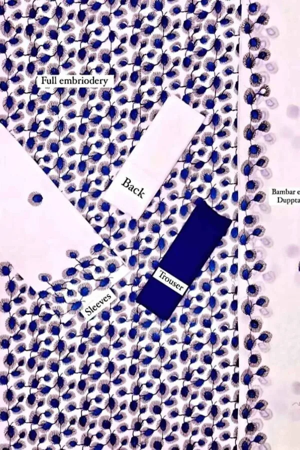 3PC – Embroidered Lawn Shirt & Trouser with Monar Dupatta