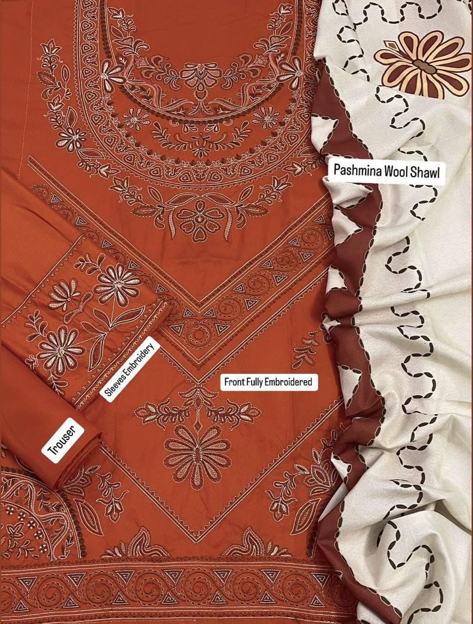 Dhanak 3pc havy embroidery with pashmina shawl